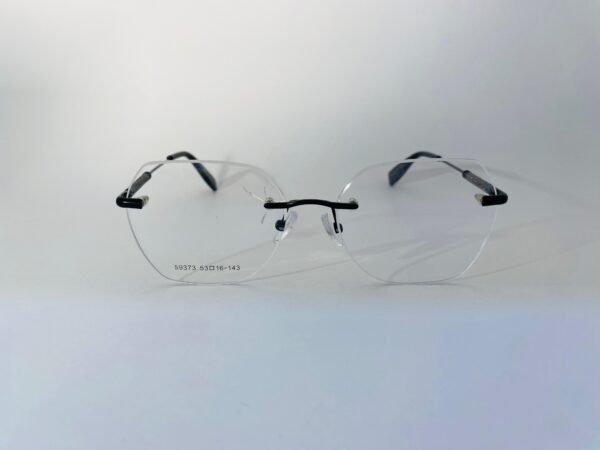 A Helena Black Vision é uma armação sem aro com hastes pretas e detalhes metálicos que trazem um toque de elegância moderna.